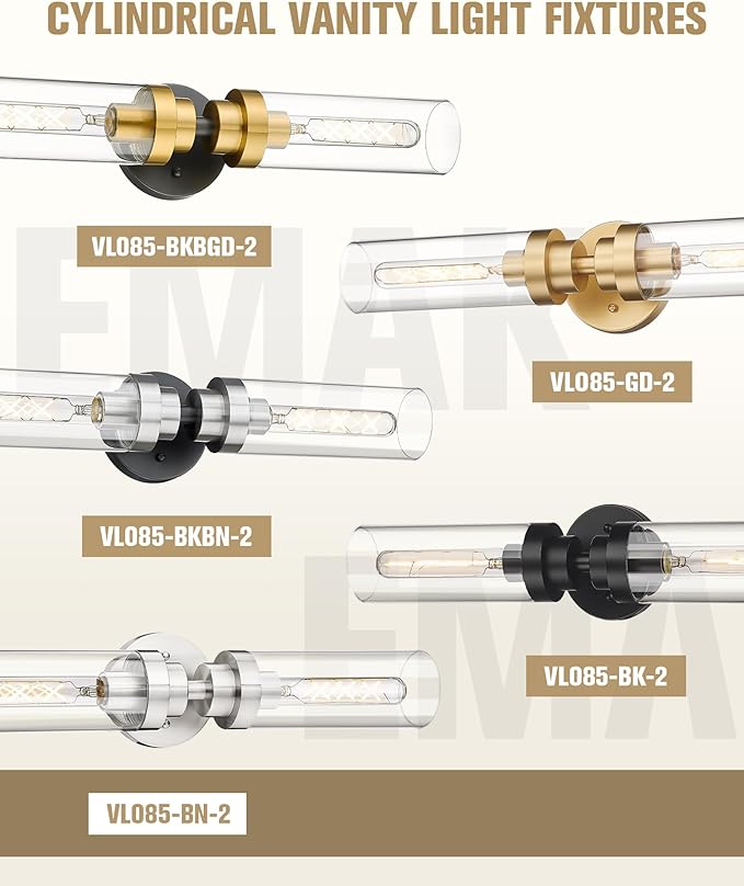 - [Trending Design] This black and brushed nickel bathroom light fixtures is made of sturdy metal and clear glass, cylinder glass shades allow the lights to diffuse farther and brighter. Simple and elegant styling is more like a work of art that enhances the taste of your home.