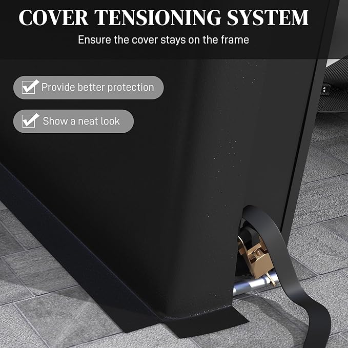 - Cover Tension Canopy: A reinforcing ratchet tension and web strap system helps keep the canopy on your car port garage, ensuring a neat look and a superior seal when weather strikes.