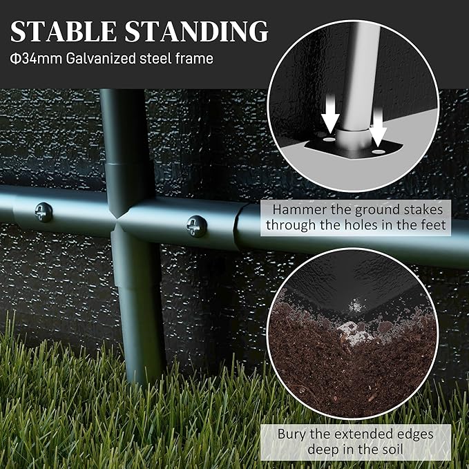 - Heavy Duty Canopy: Our heavy-duty carport is built outdoor ready with thick galvanized steel to prevent cracking, peeling, and other water-related issues. Bury the canopy's extended edges and mount it to soft ground with the included stakes.