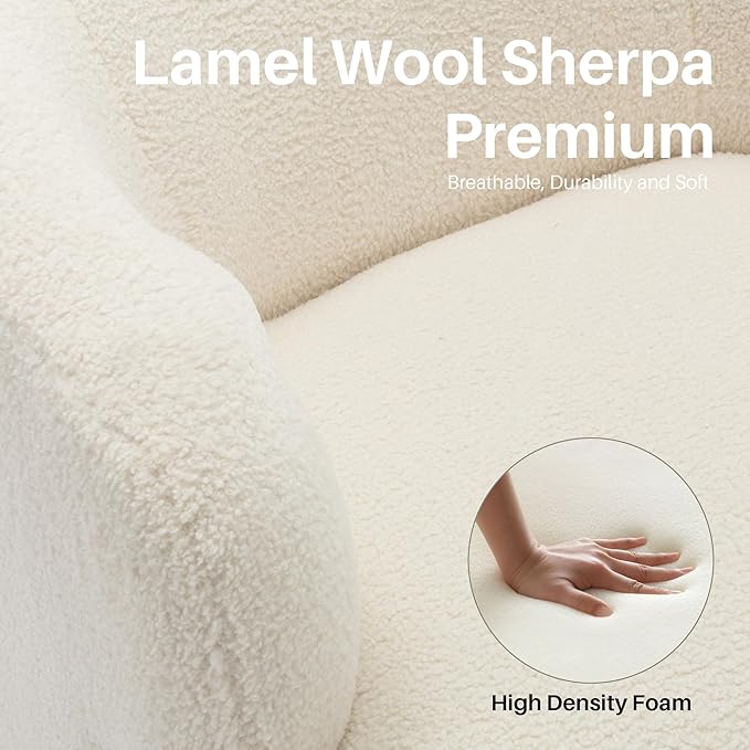- Fabric Barrel Chair: This elegant swivel chair is adorned with Sherpa, known for its soft and skin-friendly texture. Enjoy superb comfort and support with the plush high-density foam cushions, allowing you to sit for hours on end. In addition, the ergonomic curved backrest of the upholstered seat provides additional comfort and allows you to fully relax in the swivel chair.