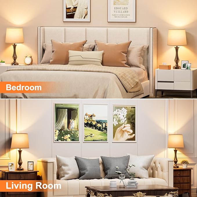 - 【E26 LED Bulbs Included】 No need to worry about purchasing separate bulbs for these nightstand lamps set of 2. We have gone the extra mile by including two premium E26 LED bulbs that perfectly complement the 3-way dimmable lamps for living room end tables. Experience lighting perfection with our nightstand lamps that boast a flicker-free and ultra-quiet operation. Indulge in the tranquil ambiance and be captivated by the mesmerizing glow that these bedroom lamps set of 2 effortlessly emit.