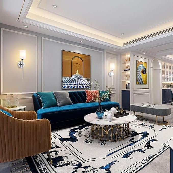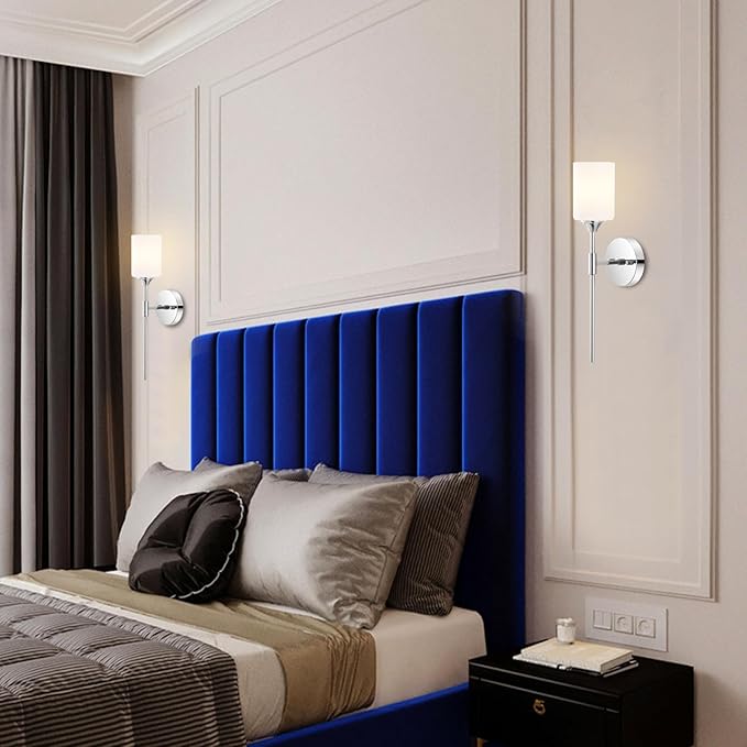 - 【2 Pack Modern Wall Light】Crafted from sturdy metal , featuring brushed chrome finish with white cylinder glass shade, BYOLIIMA modern wall sconce no need to worry about getting oxidation and color fading. Durable Quality and elegant ,Perfect for mid-century decoration styles and combines the contemporary and vintage style.
