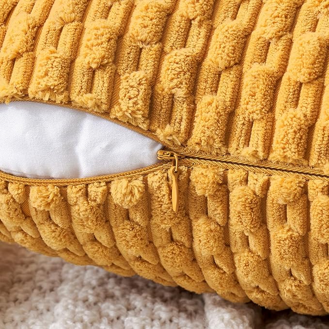 MIULEE Throw Pillow Covers Soft Corduroy Decorative Set of 2 Boho Summer Striped Pillow Covers Pillowcases Farmhouse Home Decor for Couch Bed Sofa Living Room 20x20 Inch Yellow
