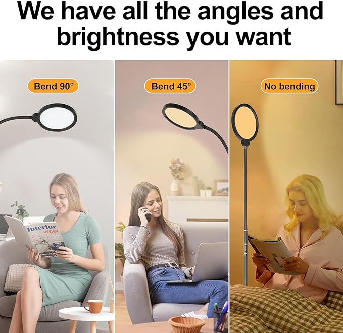 - 【Adjustable Lamp Head】The adjustable gooseneck floor lamp can rotate 360°, standing lamps for living room corner can be adjusted to your preference, ensuring the ideal angle for reading, working, or any task.