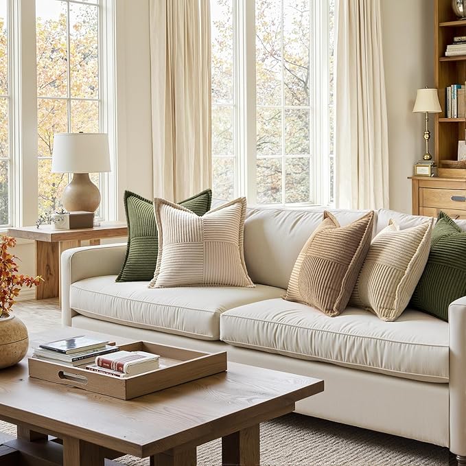 - 【Unique Design】 The corduroy stripes are spliced in different directions in a unique design. The artful arrangement creates an eye - catching visual effect, making them a perfect decorative accent for your couch or bed.