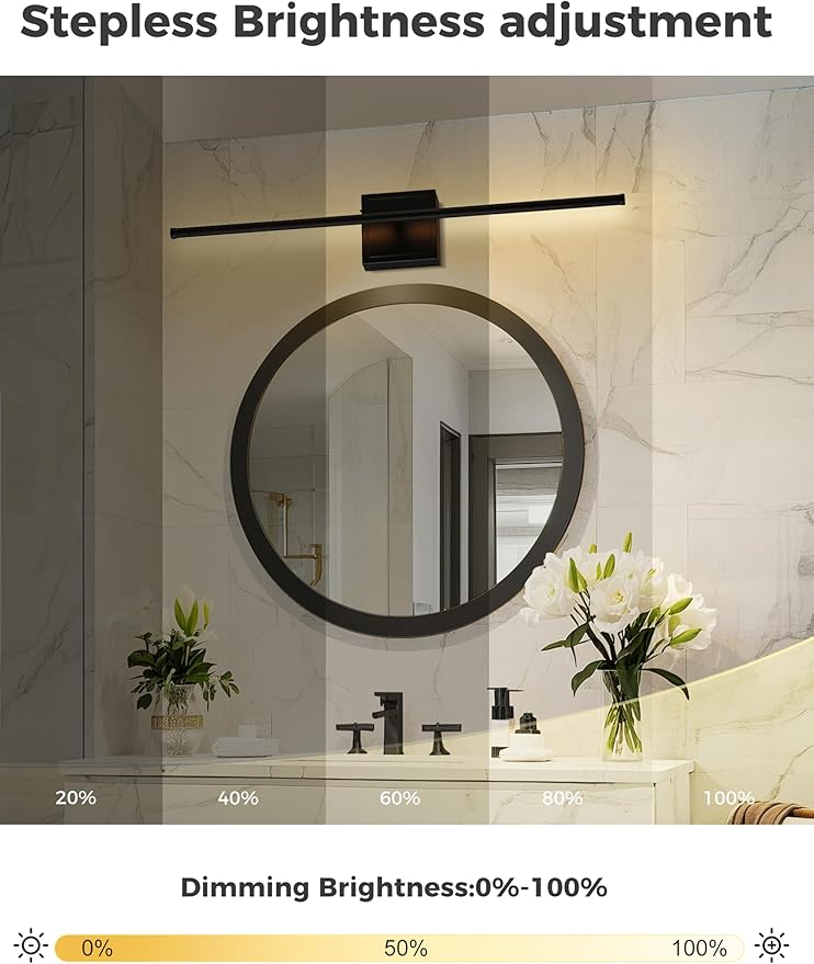 - 【Dimmable & 350° Rotational Flexibility】The wall sconces set of two features stepless dimming from 10% to 100%, making it more versatile than non-dimmable lights. these battery operated wall sconces offer enhanced flexibility in directing light wherever it's needed. You can easily select the perfect brightness to suit various needs, whether for a soft ambient glow or brighter task lighting.