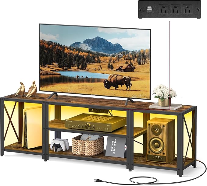 - 【BUILT-IN CHARGING STATION】The power strip of this TV stand features 3 AC outlets, 2 USB-A ports, and a 4.9 ft extension cord, making it easy to keep your devices powered and organized without crowding your space with extra cables