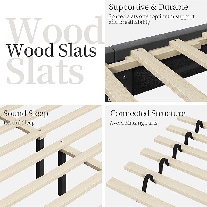 - Reasonable Under-bed Space: 6" ground clearance allows vacuum cleaning robots to pass through easily, making cleaning this full bed frame a breeze for you