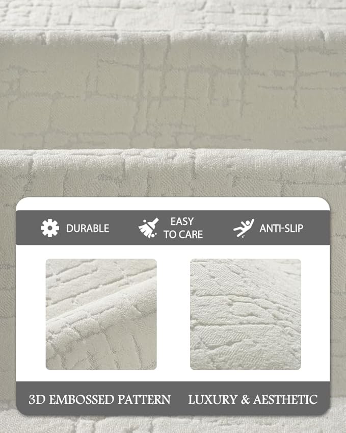- AESTHETIC&COMFORT: 3D embossed simple pattern adds style and personality to your exquisite bathroom space. This bath mat with improved technology makes the surface softer, cozy and skin friendly, giving your feet a warm place to rest on the cold tile.