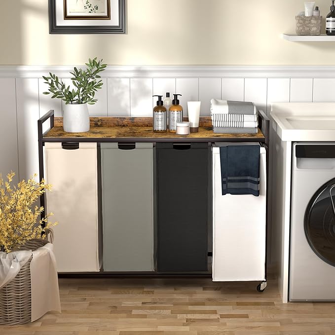 - Detachable and pull-out laundry bags - This laundry sorters is equipped with detachable and pull-out laundry bags. You can easily pull out the laundry bags, fill them with clothes, and then put them back into the laundry hamper with lid. It also has removable wheels, so you don't have to struggle to move the entire laundry basket. Just give it a gentle push or pull, and you can easily move it between different rooms, eliminating the hassle of carrying the laundry hamper.