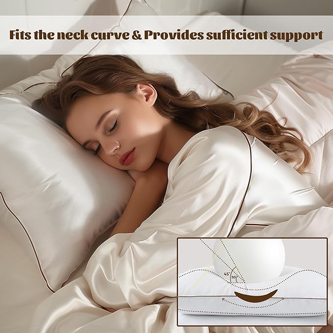 - Comfortable & Breathable Pillows: The pillowcase is made of high quality microfiber fabric with a smooth surface, soft and skin-friendly; help you fall asleep better. The single-sided brown binding strip is more luxurious. good high-density anti-fleece lining and reinforced seams to prevent feather leakage, ensuring that each pillow is both durable and comfortable.