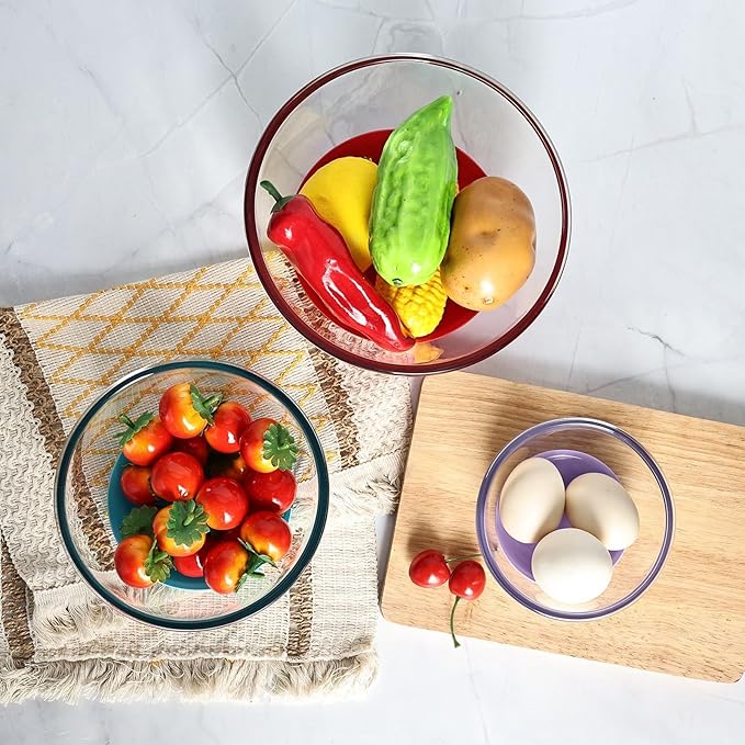 - ๐๐๐๐๐๐๐ your kitchen essentials with our Set of 3 Glass Mixing Bowls, delivering a blend of style, functionality, and convenience. Whether you're a seasoned chef or a novice cook, these bowls are bound to become your kitchen favorites