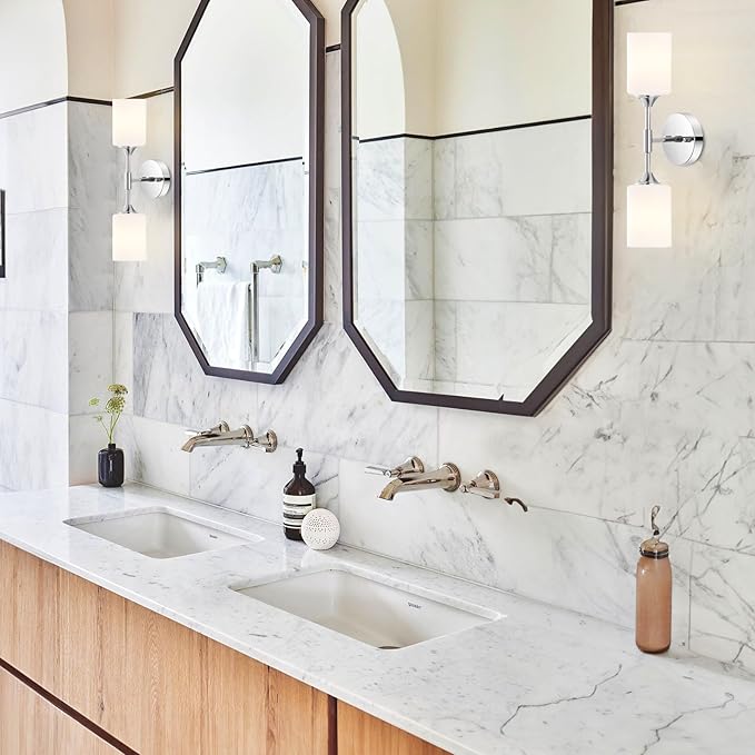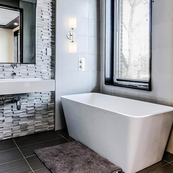 - 【2-Lights Modern Wall Light】Crafted from sturdy metal , featuring brushed chrome finish with traditional hand glassblowing white cylinder glass shade, BYOLIIMA modern wall sconce no need to worry about getting oxidation and color fading. Durable Quality and elegant ,Perfect for mid-century decoration styles and combines the contemporary and vintage style.