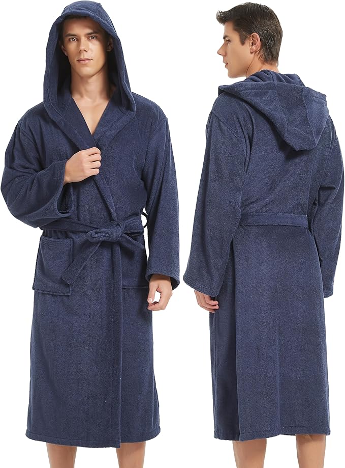 Mens Robe with Hood-Classic Terry Cloth Bathrobe for Men,Soft Knee Length Bathrobes