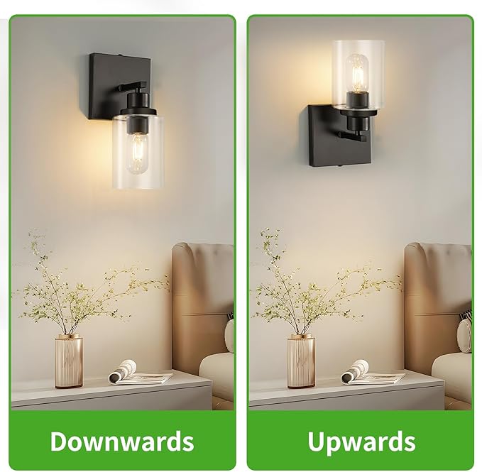 - 【Up and Down Reversible Mounting】 The black vanity lighting fixtures are generally installed on the top of the head when as mirror lights or porch lamps, which can be installed downward for lighting; If you need to use a lamp when reading or doing other things sitting on a bed or stool, you can install it up in a lower place. Besides you can install the wall light up or down according to your preferences to achieve the lighting effect you want