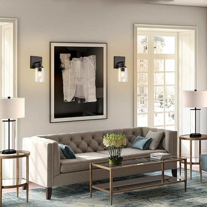 - 【Durable Material& Stylish Design】 The modern wall lights set of two are well-made with a durable matte black finish so that this black wall light fixtures are great, anti-rust and corrosion, don’t worry about color fading, equipped with a clear glass lampshade, allowing your bulb to emit bright lighting to create a wonderful atmosphere
