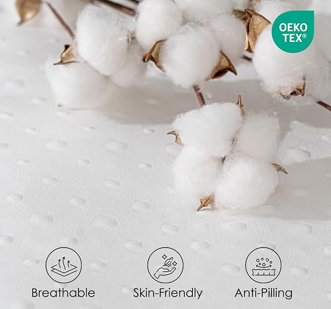 - Cooling & Breathable: Made with a 400TC cooling fabric, our topper ensures a cooling and skin-friendly experience. It maximizes comfort and temperature regulation for a restorative night's sleep, countering the heat associated with mattress.