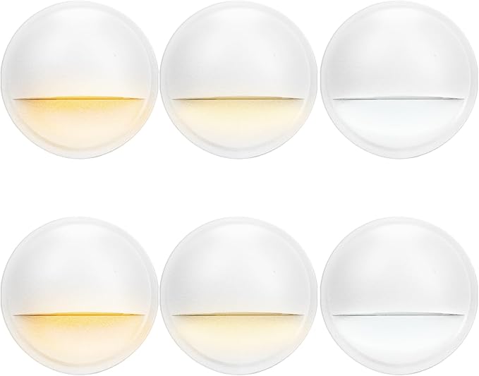 LED Low Voltage Deck Lights Outdoor Waterproof,6-Pack 3CCT Deck Lighting Fixtures Landscape Step,3W, 12V-24V AC/DC Die-cast Aluminum Housing Fence Lamp Wired 2700K/3500K/5000K (White)