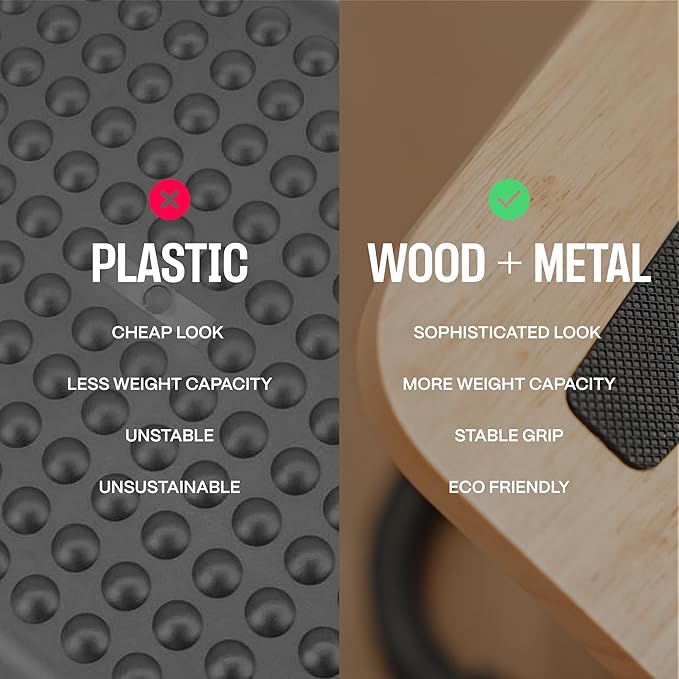 - PREMIUM BUILD QUALITY - Crafted from high-quality solid wood and carbon steel, this footstool combines durability with a sleek, modern design, perfectly complementing your stylish workspace.