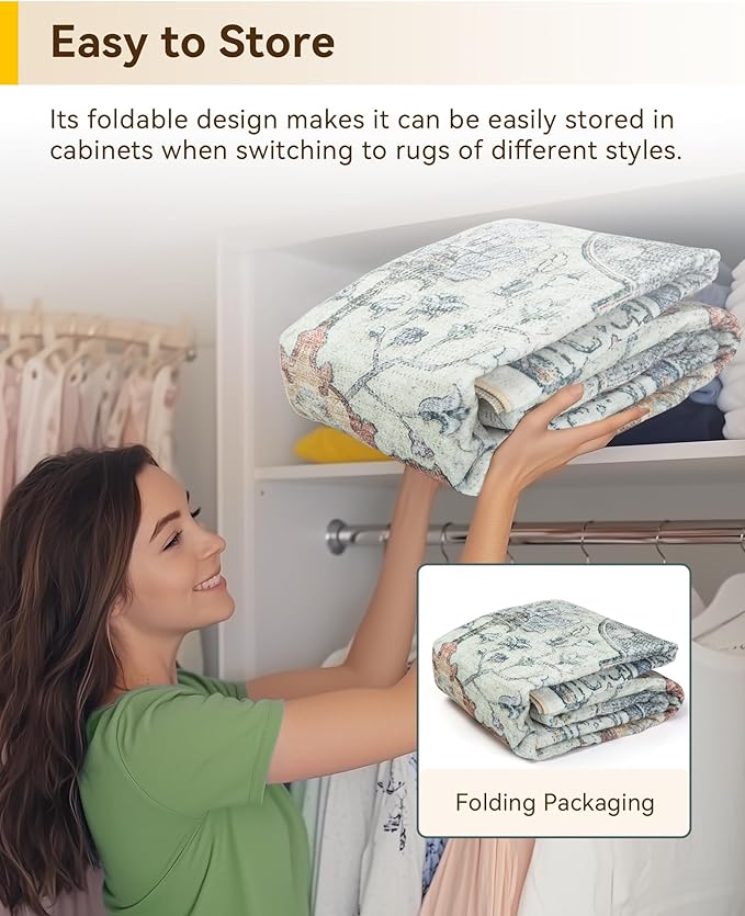 - Thin Design & Folding Packaging: this rugs with moderate thickness not only decor your home, soft on touch but also can be easily placed behind doors and under furniture. The sweeping robot can move around to clean the area rug. The thin design also makes it convenient for you to put the rugs into the washing machine for cleaning and easy to store.