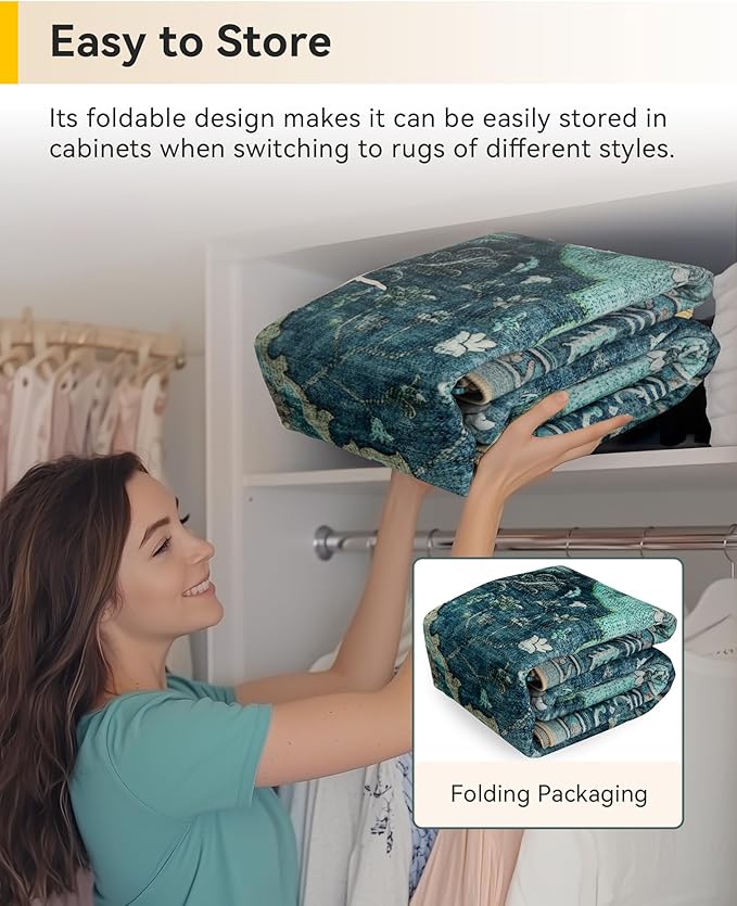 - Thin Design & Folding Packaging: this rugs with moderate thickness not only decor your home, soft on touch but also can be easily placed behind doors and under furniture. The sweeping robot can move around to clean the area rug. The thin design also makes it convenient for you to put the rugs into the washing machine for cleaning and easy to store.