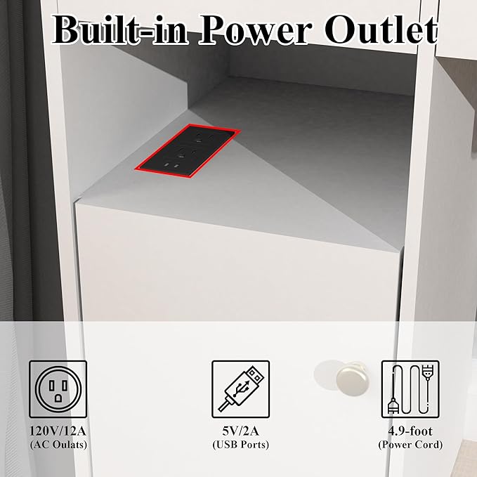 - 【Vanity Table with Charging Station】 This makeup vanity come with a bulid-in charging station on the top of the bottom cabinet, includes 2 standard plug sockets and 2 USB ports, conveniently connect your hair dryer, curling iron, and other styling tools. Additionally, it serves as a perfect charging station for your phone, tablet, or other mobile devices.