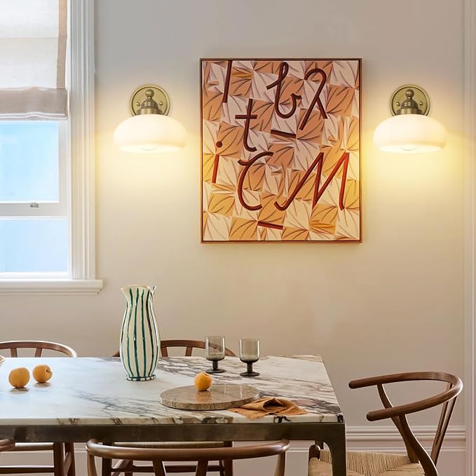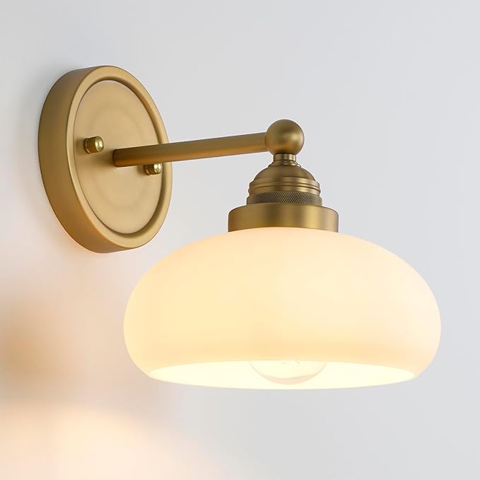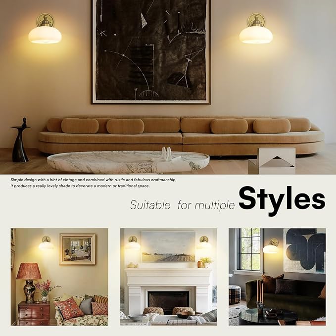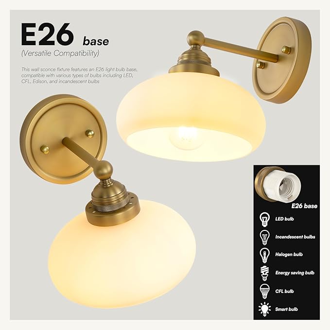- Materials: Well manufactured with glass and metal materials. Plating craft brass lampholder and hand blown white glass shades which makes the wall sconce more durable and anti-dust