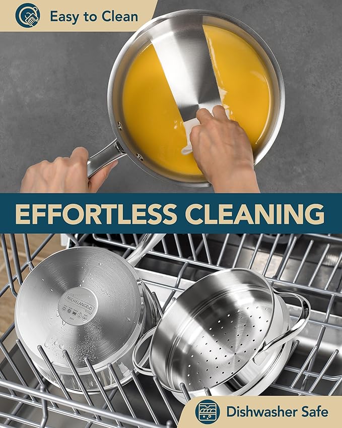 - Durable Stainless Steel: Constructed with food-grade 18/10 stainless steel with a triple bottom, this sauce pot set is designed to be long-lasting and are compatible with all types of stovetops, including induction. Meanwhile, the structure ensures efficient and even heat distribution over the entire cooking surface.
