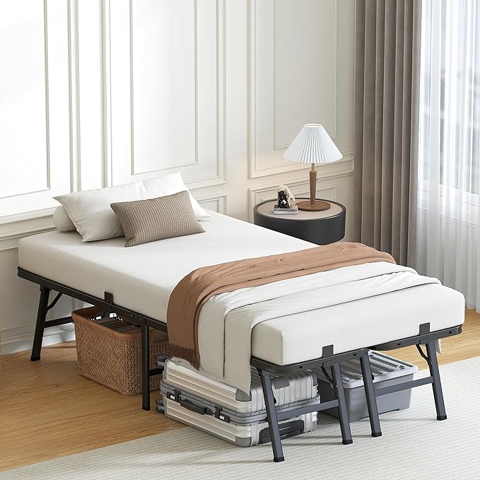 - Easy Assembly, Compact Design: The folding bed frame features a hassle-free setup that can be completed in just 10 minutes, saving you valuable time and energy. In a matter of minutes, you can have your mattress frame ready, providing instant comfort and convenience without the complexity of assembly. Its foldable and space-saving design makes it the perfect choice for small rooms, moving, temporary guest rooms, and more.