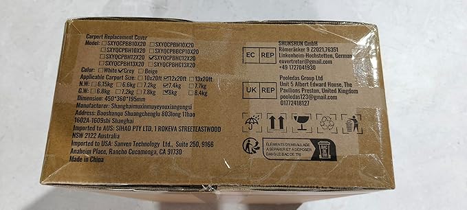 - 3. 12 x 20 Canopy Sidewall Replacement - Enhanced Weather Protection: Coated with PU+UV-resistant material on both sides, this fabric provides exceptional waterproofing and UV50+ ultraviolet radiation resistance. Whether rain or shine, you can rely on this canopy to withstand various weather conditions, ensuring peace of mind and reliable protection. **Tip: To extend its lifespan, avoid using the **carport cover** in harsh conditions such as strong winds and heavy snow.**
