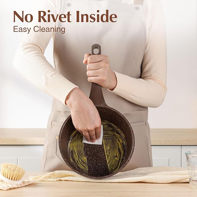 - New Technology of Composite Coating - Improved harder granite,10X enhanced for long-lasting nonstick performance. Free of Intentionally Added PFOA, smokeless, safe & healthy. Cooking with little oil for healthy diet.