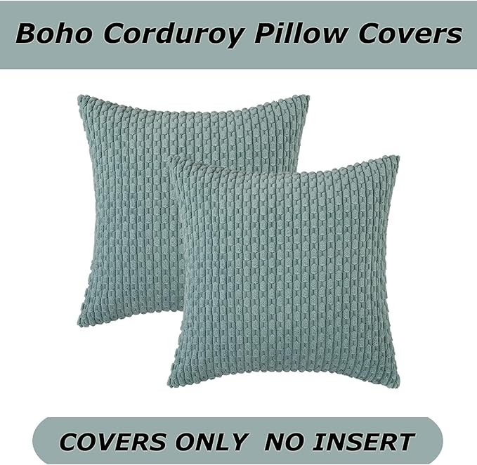 Kevin Textile Throw Pillow Covers Soft Corduroy Decorative Set of 2 Boho Striped Pillow Covers Pillowcases Farmhouse Home Decor for Couch Bed Sofa Living Room 18x18 Inch Dusty Green