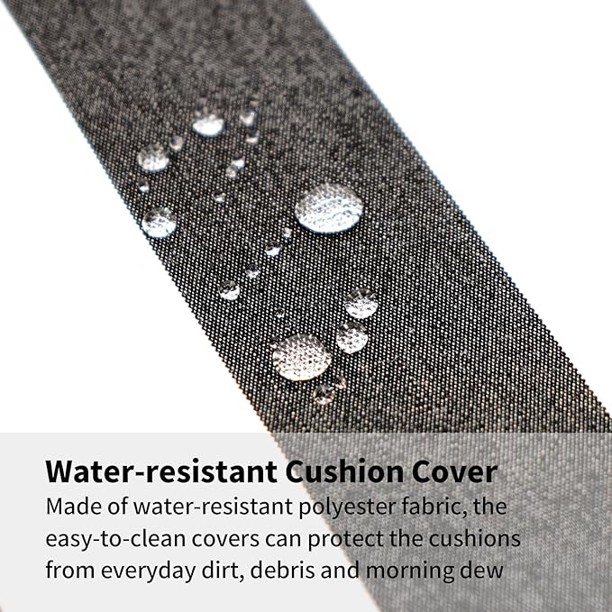 - HIGH-PERFORMANCE OUTDOOR FABRIC: The covers of our cushions are made from acrylic fibers which are dyed in a color solution before they are woven.Because each acrylic fiber is saturated all the way through,the fastness of our cushions are much higher than that of average quality polyester cushions.Our cushions are colorfast for three years.The water and stain resistant acrylic covers can also protect the cushions from everyday dirt and dew.Just spot clean as needed with mild soap and water.