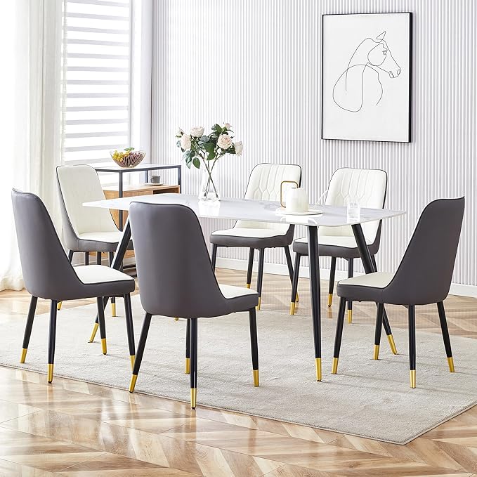 - Contemporary Design: The set features 6 modern chairs that seamlessly integrate with the overall aesthetic of the dining table. With clean lines and a minimalist design, these chairs add a touch of sophistication to your kitchen or dining room while providing comfortable seating for your guests.