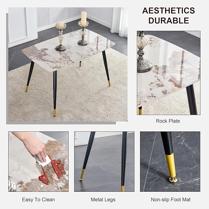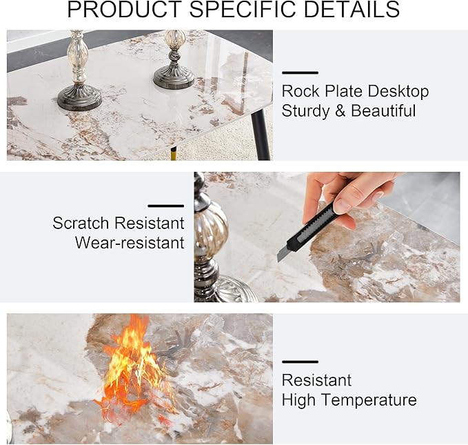- Easy to Clean and Maintain: Enjoy hassle-free upkeep with the sintered stone tabletop, requiring simple wiping for effortless cleaning, ensuring your dining area stays pristine.