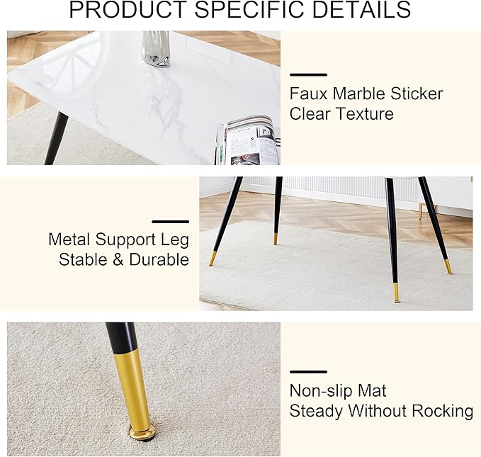 - Contemporary Design: The set features four modern chairs that seamlessly integrate with the overall aesthetic of the dining table. With clean lines and a minimalist design, these chairs add a touch of sophistication to your kitchen or dining room while providing comfortable seating for your guests.