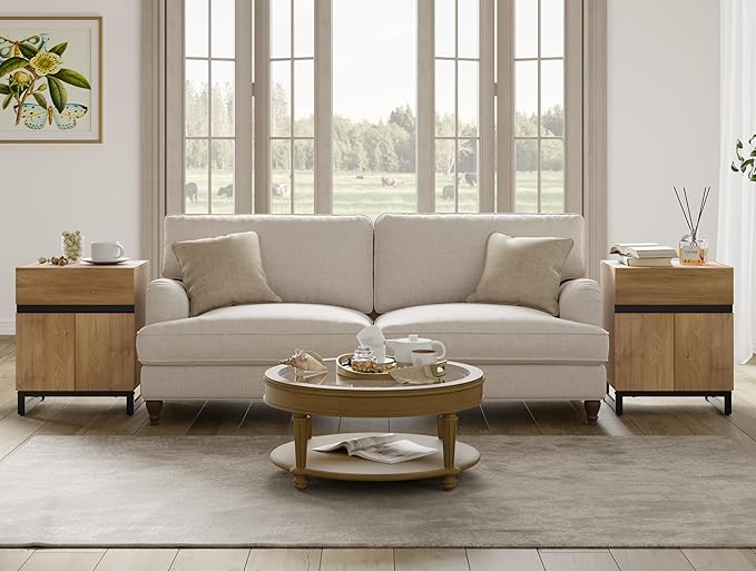 - 【 Exclusive Design 】WAMPAT's new living room furniture combination, oak modern TV stand and 2 sets of end tables. The furniture set is modern and elegant with a oak cabinet and black metal feet. Great for all styles of home decor. They will light up your living room and become a fashionable sight in your home.