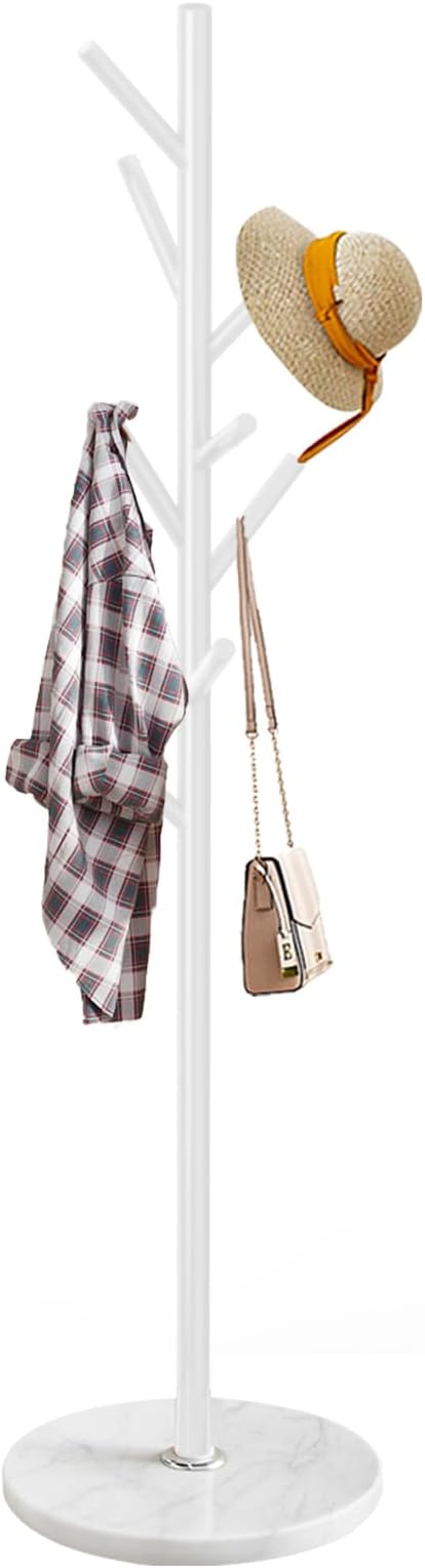 - COAT RACK STAND:LOZABEE modern meatl coat rack has a unique and innovative design with a simple and stylish style. This white coat racks are made of 100% natural marble. It has high stability and strong load-bearing, it can support multiple heavy coats and bags at the same time.8 multifunctional hooks not only meet your daily needs, but each hook has delicate stainless steel balls to take care of your clothes. You can easily access your clothes
