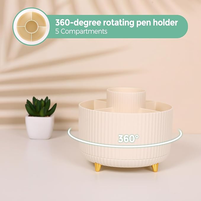 - Aesthetic and Practical Design: The office supplies sets are designed to be both elegant and functional. They enhance the aesthetics of the workspace with their stylish designs and colors, Unique designs 360-degree rotating pen holders keeping the desk tidy and organize