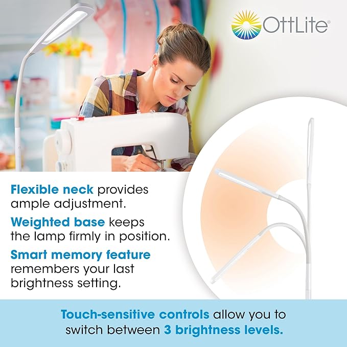 - Balanced, Natural & Healthy Illumination: OttLite Flex LED Floor Lamp is perfect for reading in your favorite chair or sewing in your craft room. The flexible neck extends the height from 49 to 71 inches to suit your spatial needs.