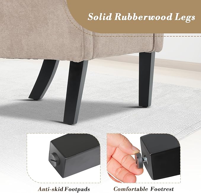 - Cotton-linen Fabric: The reading chair is made of high-quality cotton linen fabric and soft resilient foam, which is skin-friendly, scratch-resistant and breathable. Metal springs in the sofa chair increase the long-lasting elasticity of the seat.