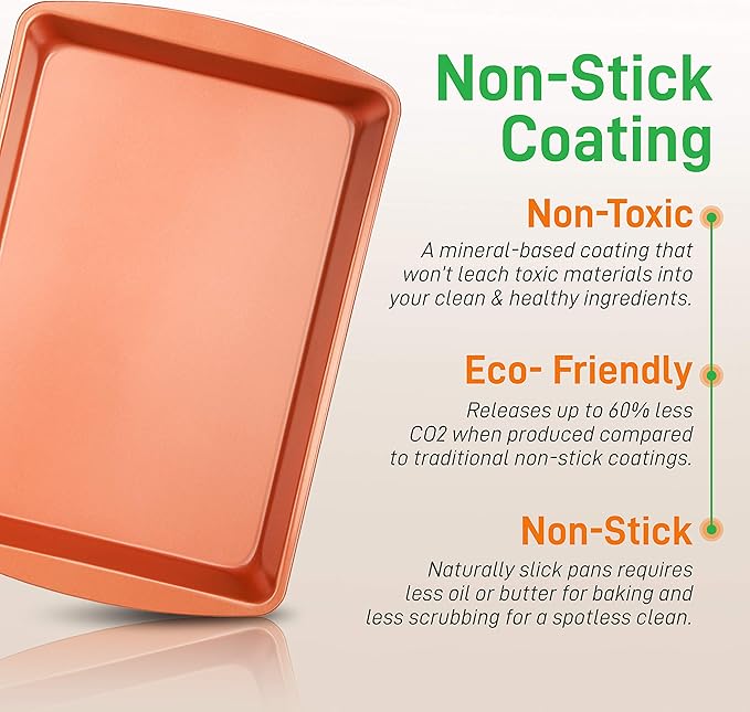 - SPACE-SAVING STACKABLE DESIGN - Made to conserve kitchen space, this non-stick baking set features a stackable tray design. Fully compatible with both standard and convection ovens, these pans are also suitable for use in refrigerators and freezers.