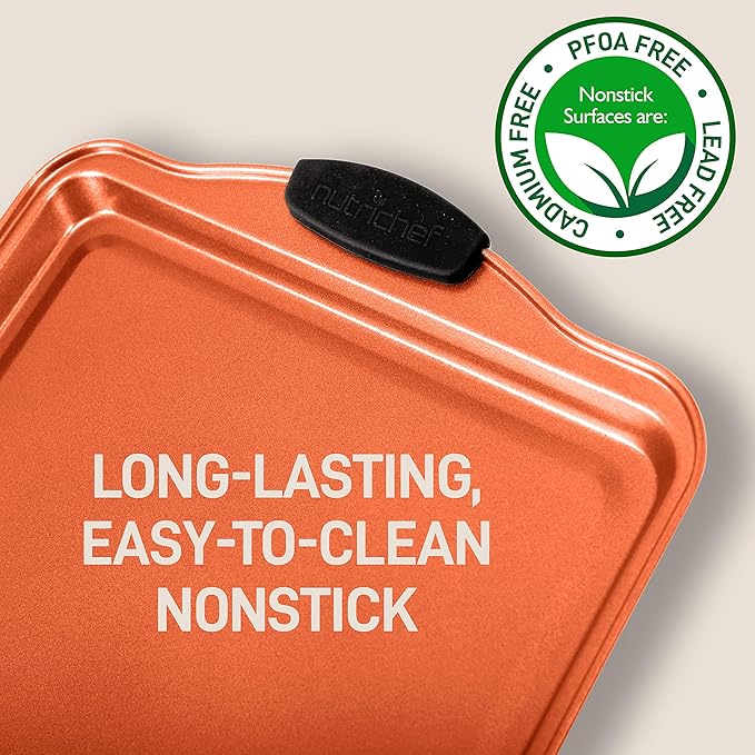 NutriChef 5-Piece Bakeware Set – Premium Non-Stick, Stackable Kitchen Baking Pans with Silicone Handles – Includes 3 Cookie Sheets, Baking Pan & Lid – Perfect for Cakes, Cookies & Brownies