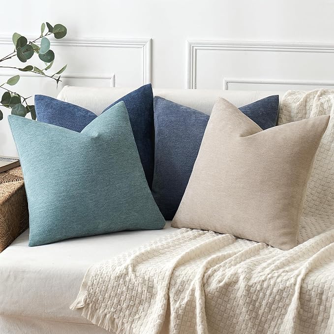 MIULEE Pack of 2 Blue Gray Decorative Pillow Covers 18x18 Inch Soft Chenille Couch Spring Throw Pillows Farmhouse Cushion Covers for Home Decor Sofa Bedroom Living Room