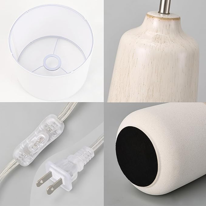 Tall Ceramic Table Lamp Set of 2, White Lamps for Bedroom Farmhouse Rustic Lamp Set Bedside Nightstand Lamps Set of Two Side Table Lamps for Living Room, 22IN