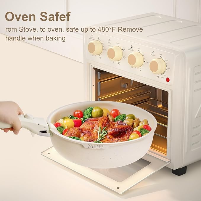- 【Versatile Usage Stoves】From gas to electric and induction, YASHE saucepan sets non stick with lids work perfectly with them to ensure you get the perfect results for every dish. Not only that, cookware can also be used in the oven. (Oven safe to 480 ℉, please remove the detachable handle for perfect use in the oven. )