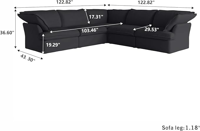 - [Size Information] Overall Size: 2 x 122.82"L x 36.6"W x 43.3"H. Sofa type: sectional couch sofa; modular sectional; modern sofa; velvet sofa;sofa sectionals for living room; living room couch; cloud couch dupes; comfy couch;modern couch.This cloud sofa can add more comfort to your living room.