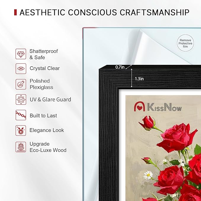 - Crystal Clear: Redefine photo preservation with KISSNOW's exclusive HD non-glare plexiglass. House UV-free, perpetual memories in a safe and shatter-resistant elegance.