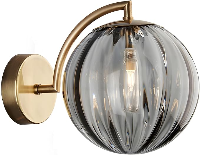 - Simple Globe Design: The modern globe wall sconces use a simple smoked glass lampshade and golden metal base, simple and modern, modern design and simplify style will create a warm and cozy atmosphere. This bathroom lamp is perfect for any style, from modern to rustic, shining in your room. Modern wall lights for living room with a simple shape, make your home adding more artistic atmosphere and inject warm coziness.