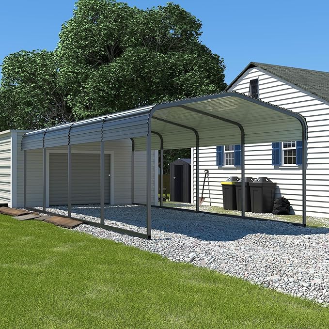 - HEAVIER METAL CARPORT: Compared to other 12 x 20FT carports in the market that weigh 405 pounds, our 12 x 20FT carport weighs up to 535 pounds and is packed in five boxes, making them heavier and sturdier. Our carport has 8 heavy-duty anchor kits included for installation. Please note that this can only be installed on leveled surface.